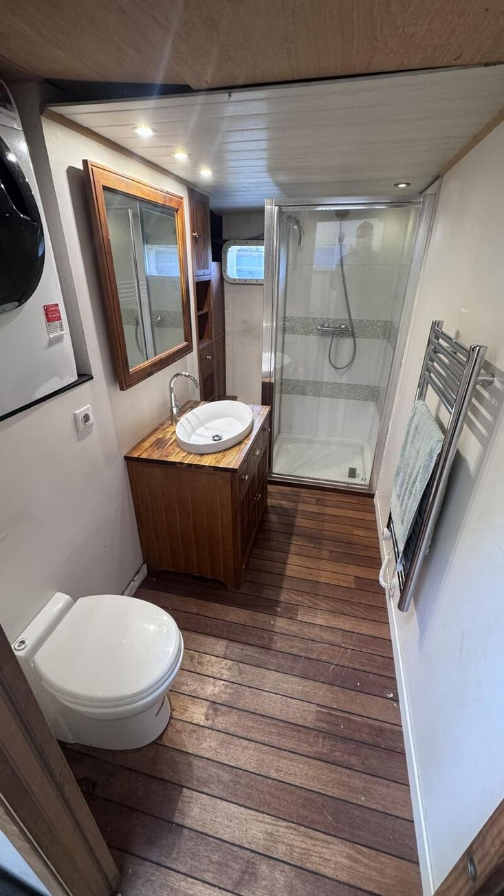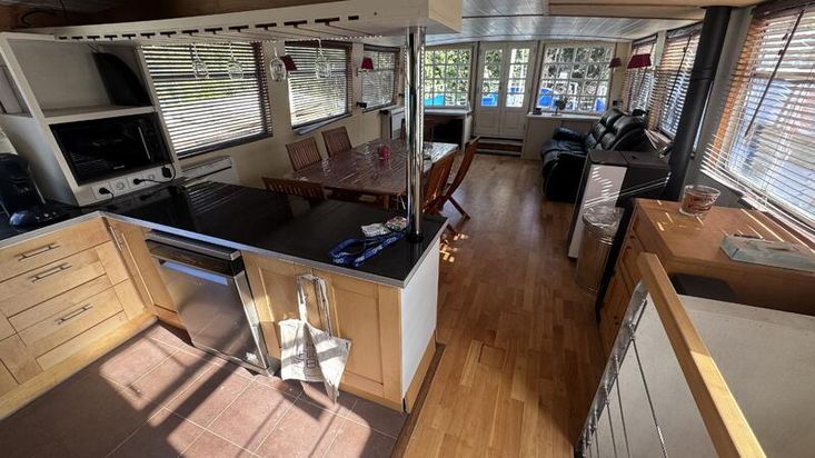 Discover this 19.50-metre barge offering generous living space. It features a pleasant outdoor terrace, ideal for enjoying sunny days on the water. Inside, the bright and spacious saloon and kitchen create a welcoming and comfortable living area — the true heart of the boat.