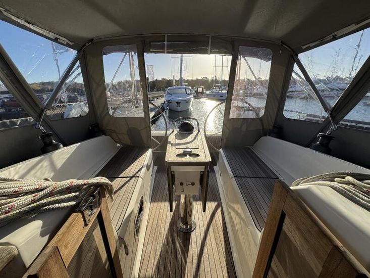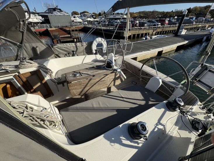 Upgraded Smart Sailing Package with engine upgrade, comprising:Gas Rod Kicker, Companion way door with perspex-insert, 2 spring cleats midships,Additional service battery and upgraded 40Ah battery charger Garmin GMI 20 Bundle with GWS 10 (speed, depth, wind, temp) port & StbdVolvo D1-30 (28hp) saildriveUpgraded Comfort Package with teak on cockpit floor, comprising:Cockpit table with foldable wings and storage box, solid wood;Shower in aft head; Additional water tank in foreship 150 l;Warm water boiler 20 l via engine-cooling circuit and 230 V shore power supply;Rail opening on both sides; Blinds on side windows and panoramic windowsTeak on cockpit floorComfort Package upgrade - Fusion Marine Sound SystemAnchor Package, comprising:Electric anchor windlass, bow fitting, Delta anchor & 50m chainUpgraded Navigation Package with Bow Thruster, comprising:Garmin GPSMap 820 colour plotter, Garmin 300i DSC VHF with built-in AIS;Garmin GHP12 Autopilot, Bow ThrusterOther items fittedSleep feature in saloon£Interior wood colour - TeakInterior Upholstery upgrade - Comfort BrownHeating to all cabinsSprayhoodWheel & table coversUV strip to GenoaOcean Line flooringGarmin 18" RadarPackamainSprayhood grab handleSpinnaker winchesLarger gas lockerHeavy-duty 12v socketUK plug socketsHi tech sailsWhisker pole (2025)Cockpit bimini (new 2020)Cockpit enclosure (new 2024)Solar panel with Victron Smart Charge Controller (2024)Rig inspection 2024Sail drive diaphragm changed 2023Hot and cold cockpit shower