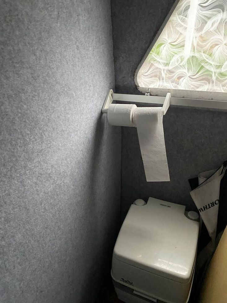 To your left, you’ll find a toilet compartment with a cassette toilet. Moving further along, there’s a dinette area that comfortably seats two and can be converted into a single berth when needed.