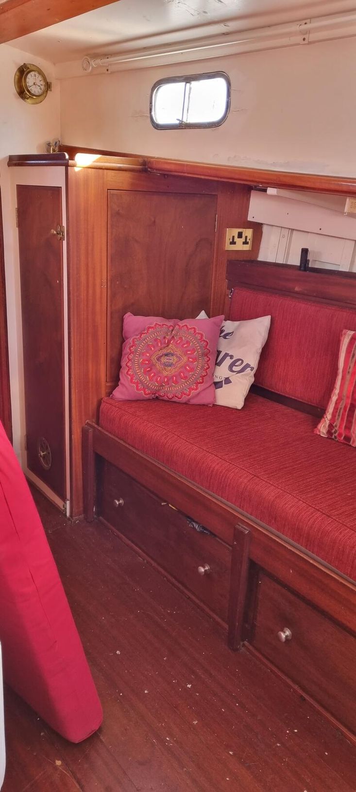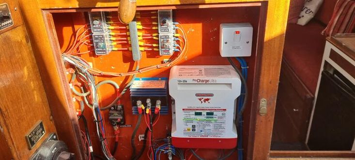 Danforth 30lb and CQR 25lb anchors with 3/8 inch anchor chain, anchor warp. Simpson lawarence 400 electric windless. Compass, VHF.