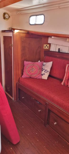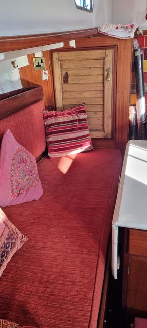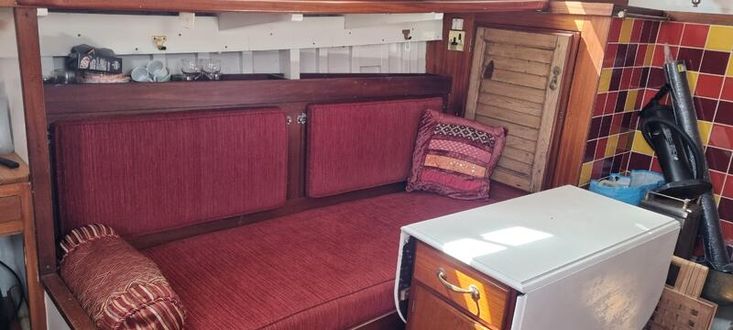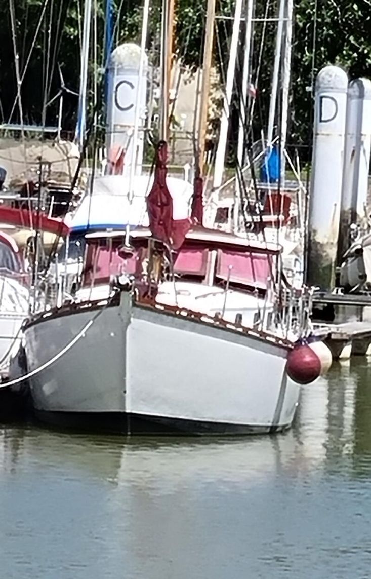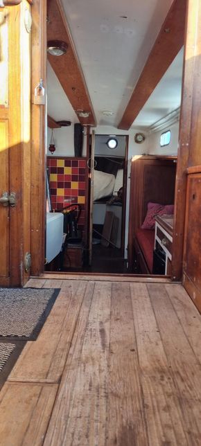 1973 Daivd Hillyard ketch rig motor sailer, flared bow, transom stern, Centre cockpit with dog House protection. Long centre keel. Hard chine Hull, carvel construction, iroko planking on oak timbers, copper fastened.