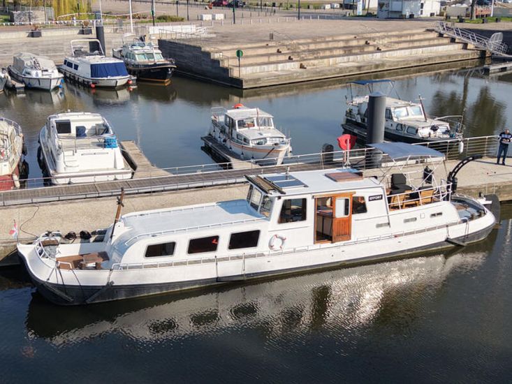 Ehemaliges Binnenfahrtschiff vom Typ Skûtsje, das sich hervorragend für längere Fahrten auf den europäischen Binnenwasserstraßen eignet. Mit einer Durchfahrtshöhe von ca. 2,80 Metern steht ein sehr großes Fahrgebiet zur Verfügung. Dieses charaktervolle Schiff vereint eine authentische Ausstrahlung mit modernem Komfort und ist dank unter anderem eines Flüstergenerators und Solarpaneelen vollständig autark. An Bord erwartet Sie ein überraschend komfortables und durchdachtes Layout. Die maßgefertigte Kombüse im Steuerhaus bildet dabei das einzigartige und stimmungsvolle Herzstück des Schiffes. Darüber hinaus verfügt das Schiff über eine Eignerkabine, eine Gästekabine sowie ein Badezimmer mit Dusche, wodurch ein angenehmer Aufenthalt an Bord gewährleistet ist, sowohl für längere Reisen als auch für eine mögliche Nutzung als Wohnschiff. Das großzügige Achterdeck bietet viel Platz zum Sitzen im Freien und lädt dazu ein, die Umgebung zu genießen und gemeinsam mit Familie und Freunden zu entspannen. Wenn Sie auf der Suche nach Abenteuern auf europäischen Wasserstraßen sind und/oder ein gepflegtes, fahrbereites Wohnschiff suchen, ist dieses Schiff eine ausgezeichnete Wahl. Das Unterwasserschiff wurde zuletzt im Mai 2024 überprüft.
