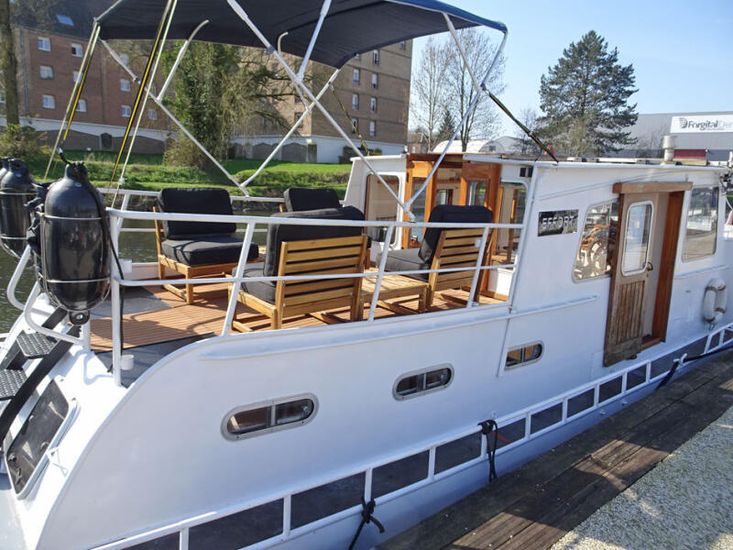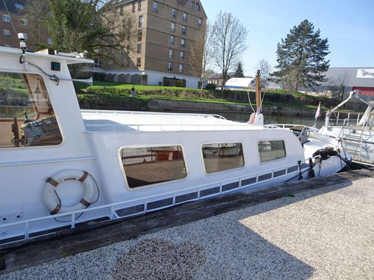 Ancien bateau de transport fluvial, de type Skûtsje, parfaitement adapté aux longues navigations sur les voies navigables européennes. Avec un tirant d’air d’environ 2,80 mètres, il offre un vaste espace de navigation. Ce navire de caractère allie une allure authentique au confort moderne et est entièrement autonome grâce notamment à un groupe électrogène insonorisé et à des panneaux solaires. À bord, vous découvrirez un aménagement étonnamment confortable et bien pensé. La cuisine sur mesure située dans la timonerie constitue un espace central unique et convivial. Le bateau dispose en outre d’une cabine propriétaire, d’une cabine invités ainsi que d’une salle d’eau avec douche, garantissant un séjour très agréable à bord, tant pour la navigation que pour une éventuelle vie à bord. Le vaste pont arrière offre de nombreuses possibilités pour s’installer à l’extérieur, profiter de la vue et se détendre en famille ou entre amis. Si vous recherchez une aventure sur les voies navigables européennes et/ou envisagez de vivre à bord d’un péniche Hollandaise bien entretenu, ce navire est recommandé. Le dernier plan de sondage est réalisé en mai 2024.