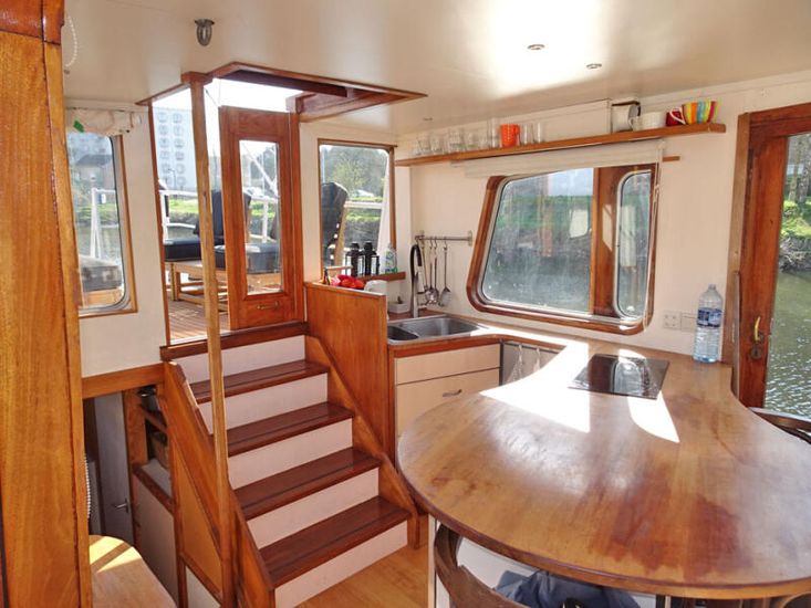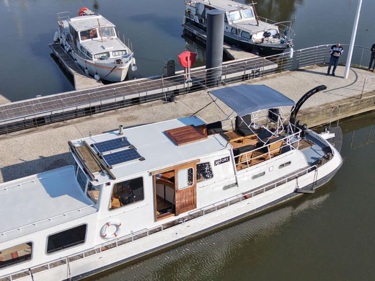 Voormalig binnenvaartvrachtschip van het type Skûtsje, dat zich uitstekend leent voor het maken van langere reizen over de Europese binnenwateren. Met een doorvaarthoogte van ca. 2,80 meter is er een zeer groot vaargebied beschikbaar. Dit karaktervolle schip combineert authentieke uitstraling met hedendaags comfort en is volledig self-supporting dankzij onder andere een fluistergenerator en de zonnepanelen. Aan boord treft u een verrassend comfortabele en doordachte indeling. De op maat gemaakte keuken in de stuurhut vormt een uniek en sfeervol hart van het schip. Tevens heeft het schip een eigenaarshut, een gastenhut en een badkamer met douche, waardoor het verblijf aan boord zeer aangenaam is. Zowel voor het reizen maar ook om eventueel aan boord te wonen. Het royale achterdek biedt volop ruimte om buiten te zitten en te genieten van het uitzicht en met vrienden en familie te ontspannen. Dus, als u op zoek bent naar een avontuur op de Europese wateren en/of op een net varend woonschip wil gaan wonen, dan is dit schip zeker een aanrader. Het onderwaterschip is voor het laatst gekeurd in mei 2024.