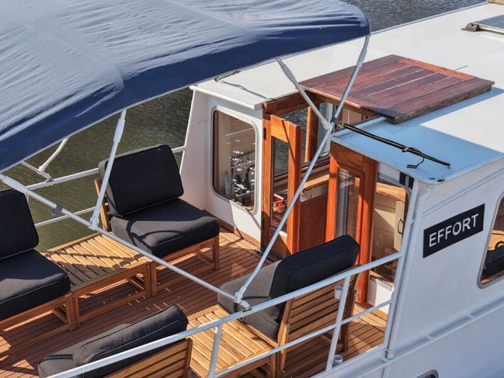 Former inland cargo vessel of the Skûtsje type, ideally suited for extended cruising on the European inland waterways. With an air draft of approximately 2.80 metres, an extensive cruising area is accessible. This characterful vessel combines an authentic appearance with modern comfort and is fully self-supporting, thanks in part to a whisper generator and solar panels. On board, you will find a surprisingly comfortable and well-designed layout. The custom-built galley in the wheelhouse forms a unique and inviting central point of the vessel. Furthermore, the vessel features an owner’s cabin, a guest cabin, and a bathroom with shower, ensuring a very pleasant stay on board, both for extended cruising and potential liveaboard use. The spacious aft deck offers ample room for outdoor seating, allowing you to fully enjoy the surroundings and relax with family and friends. If you are looking for an adventure on the European waterways and/or considering living aboard of a well-maintained Dutch Barge / cruising liveaboard vessel, this vessel is highly recommended. The last hull survey was carried out in May 2024.