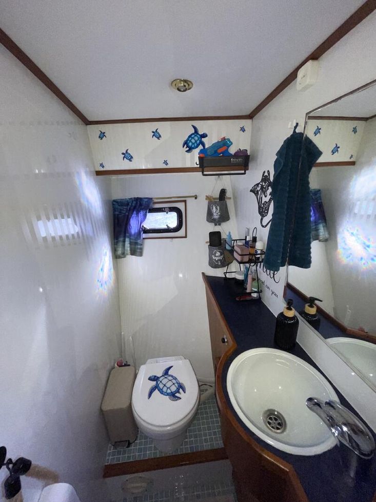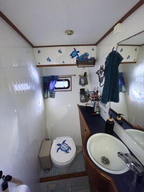 In terms of accommodation, the boat offers two comfortable cabins providing up to four berths, perfectly suited for family use or extended cruising. You will also find a bathroom with shower and washbasin, separate toilet facilities, as well as a second WC adjoining the forward cabin, ensuring everyday comfort on board.