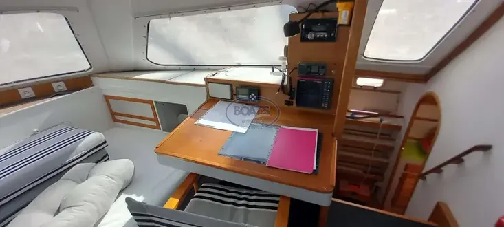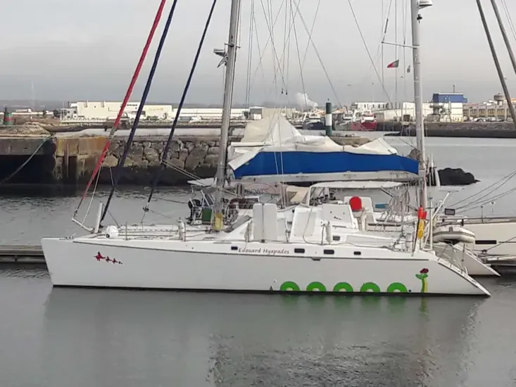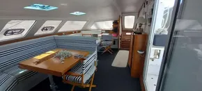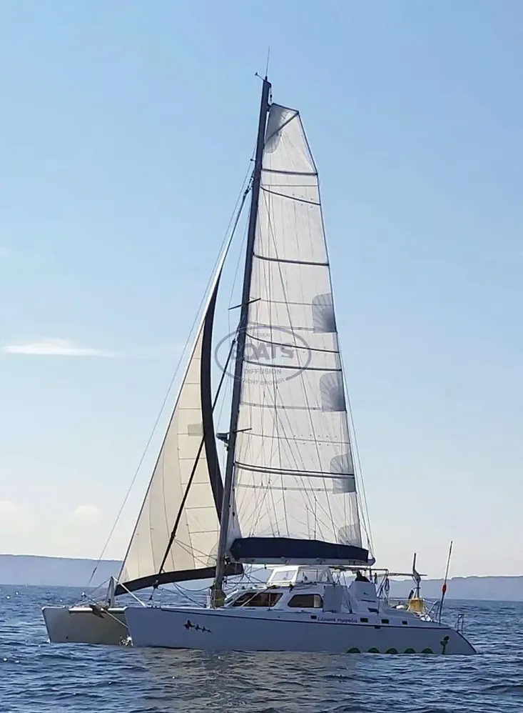 Ce catamaran de 48', dessiné par les célèbres architectes Marc Van Peteghem et Vincent Lauriot-Prévost, est prêt pour des navigations océaniques. Construit en bois époxy, il allie performance à la voile et confort. Modernisé depuis 2018, il dispose de moteurs Nanni Diesel, d’un jeu de voiles complet, de panneaux solaires 300W, DUOGEN et dessalinisateur Aquabase. Intérieur spacieux avec 2 cabines doubles, cuisine équipée, électronique moderne. Idéal pour la croisière au long cours, avec équipements de sécurité complets.