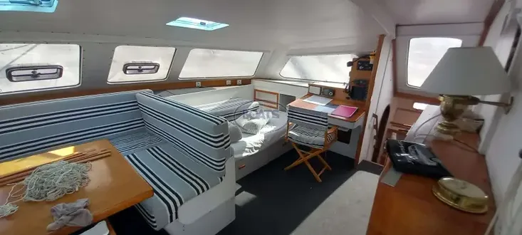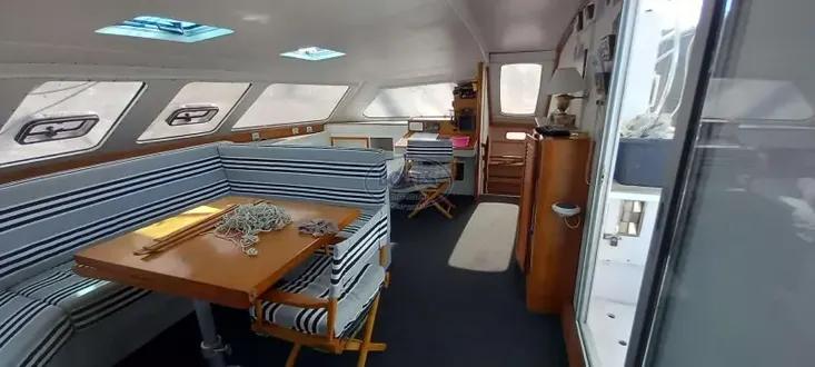 Salon de pont spacieux, parfait pour profiter de la vue et se détendre en navigation ou au mouillage