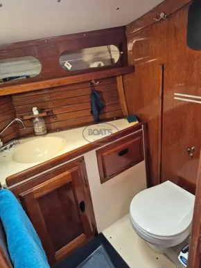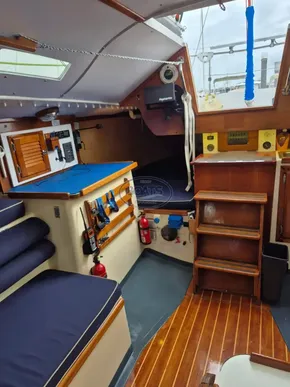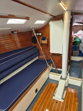 Forward cabin: double berth. Saloon: 4 single berths + large berth under the cockpit. Recent foam padding, Jabsco toilet serviced in 2024.