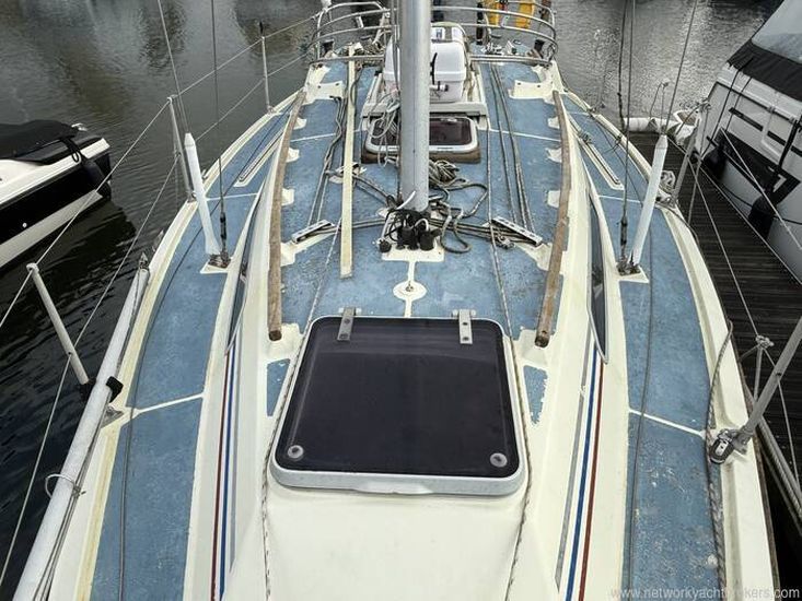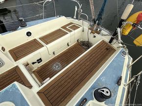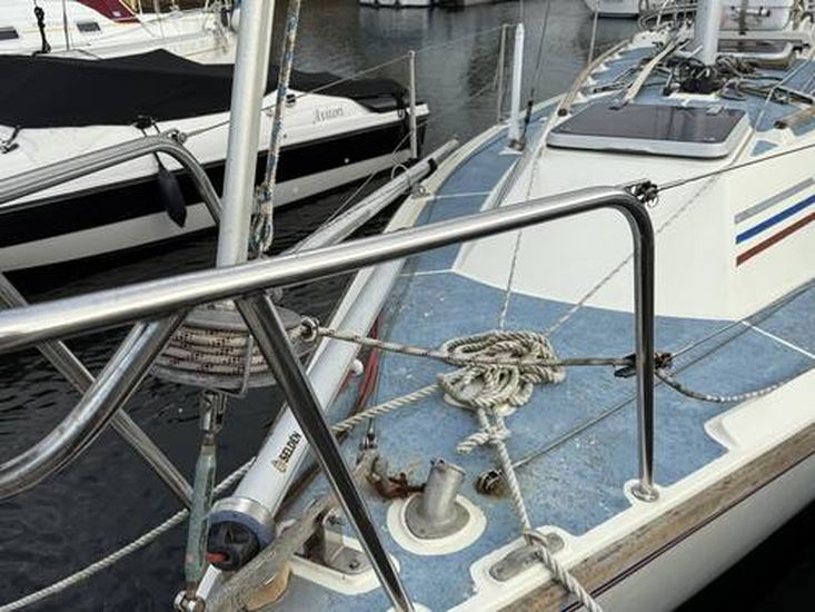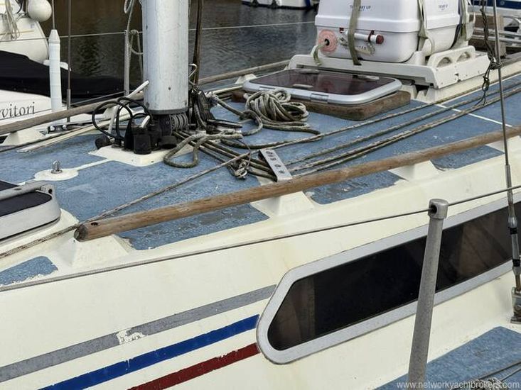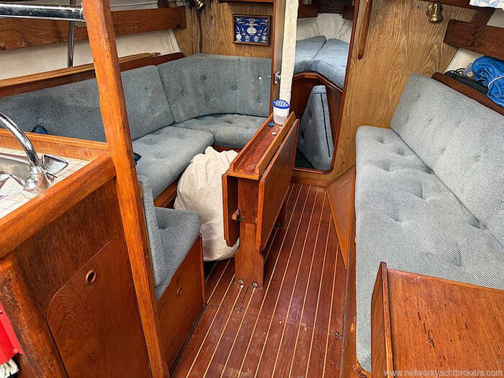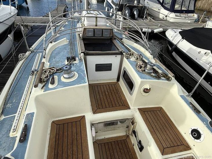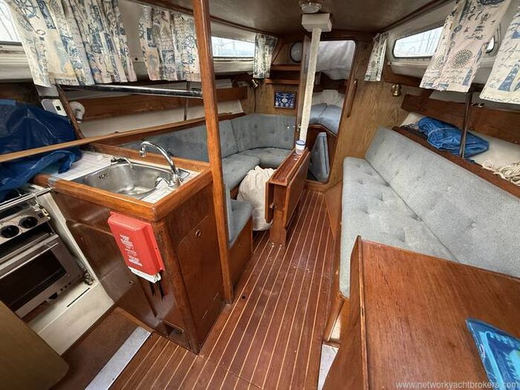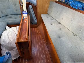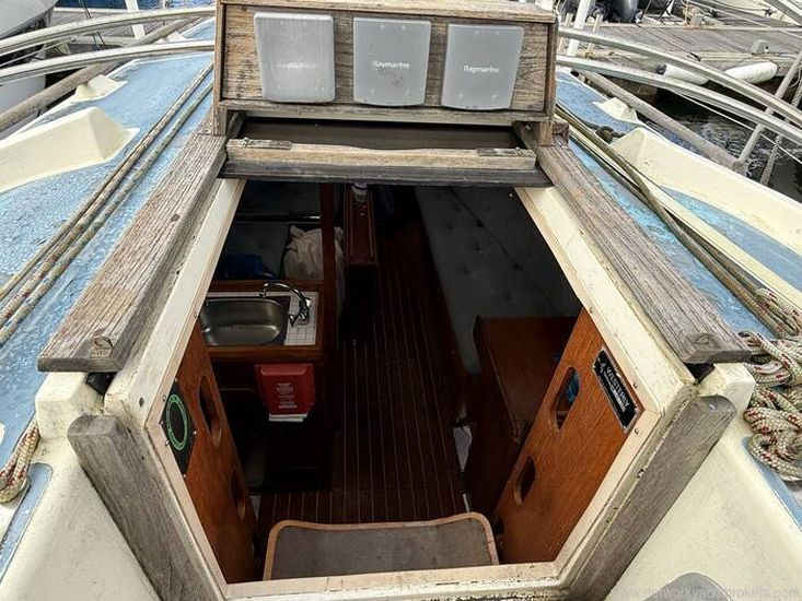 Aft cockpit with approx 4ft deep and long lazarette to Starboard side. Tiller steering, transom hung rudder.
