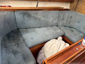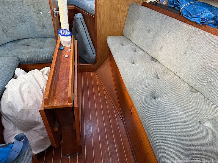 Spacious seating area both port and Starboard side with folding table in the center.