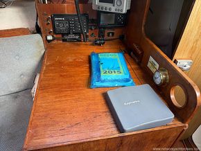 Navigation desk with storage.